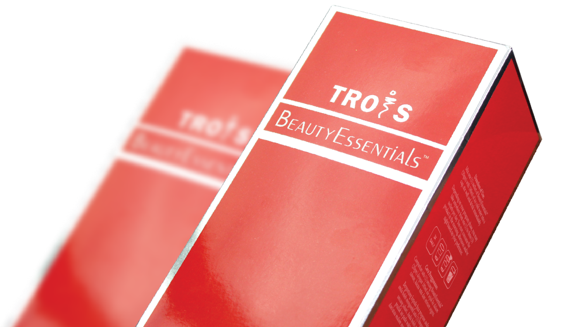 TROIS BeautyEssentials, an all-natural comprehensive nutrition-therapy solution for greater wellness through inner health enhancement, leading to outer beauty.